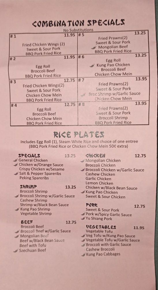 Egg RollKung Pao Chicken (spicy)Broccoli BeefChicken Chow Mein.